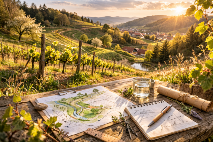 Gemeinsam wird die Hoflandschaft erkundet, analysiert und weitergedacht. Dabei spielt auch der Umgang mit Wasser – insbesondere in Hang- und Steillagen – eine wichtige Rolle. Daraus entstehen Ideen und erste Maßnahmen, die helfen können, Wasser besser in der Fläche zu halten, Lebensräume zu stärken und landwirtschaftliche Flächen widerstandsfähiger zu machen.